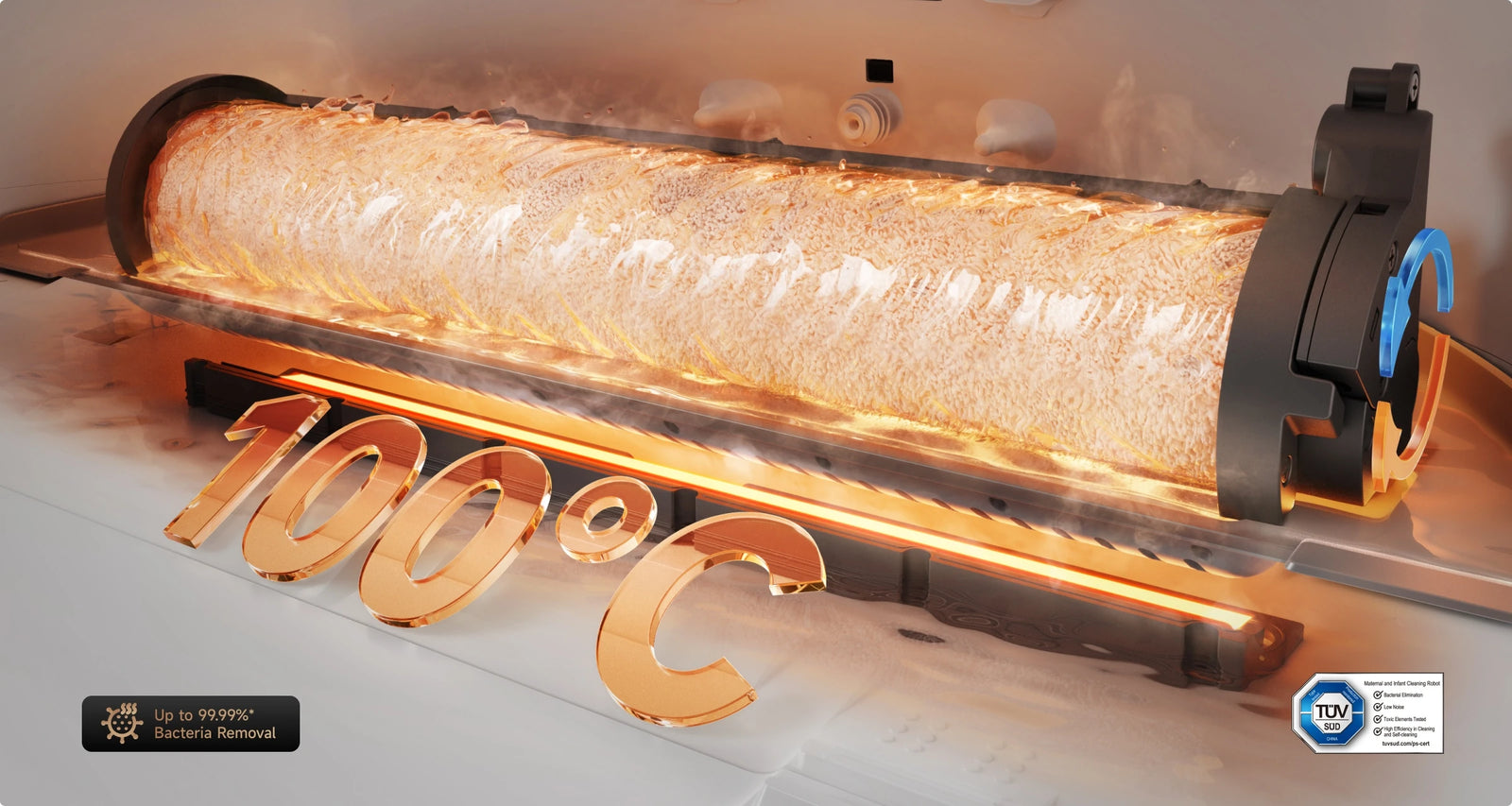 *99,99 %: 100 ° C varmt vann viser seg å drepe 99,99 % E. coli og inaktiverer 99,99 % influensa A virus H1N1 under laboratorietestforhold, hentet fra SGS IBR Laboratories (rapport nr. HFT250600026271). Faktisk ytelse kan variere.