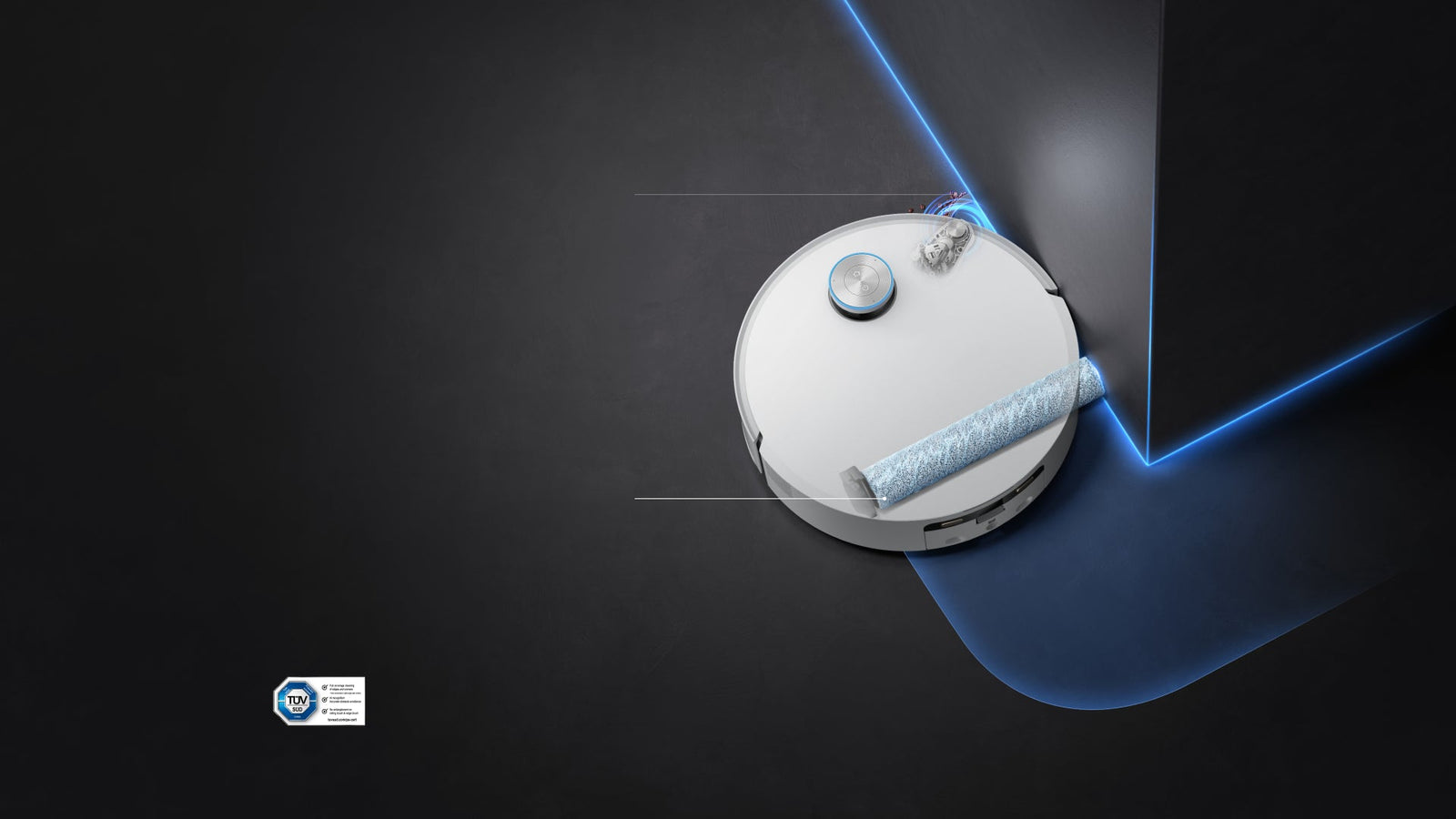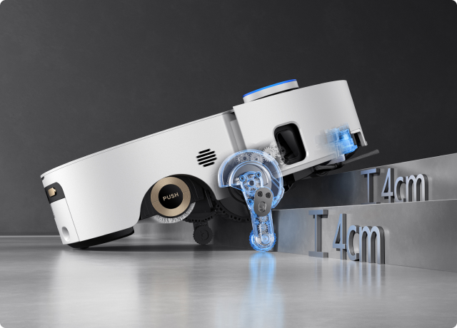 *14 mm: Robotstøvsugerens høydeforskjell er 14 mm før og etter heving av mopp.