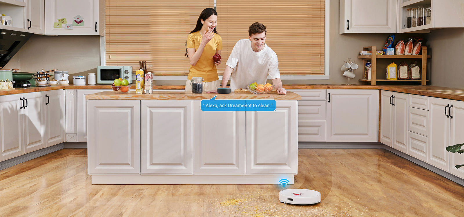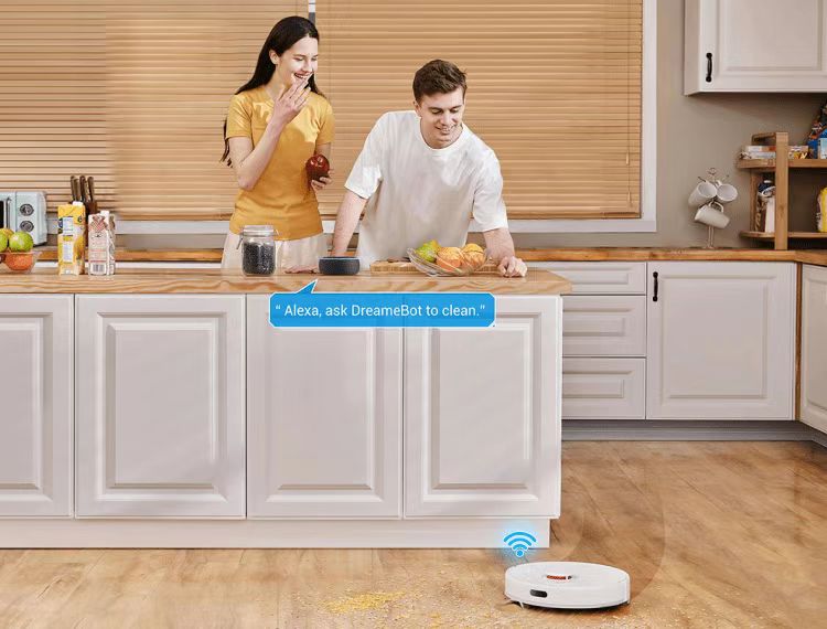 *270 m²: Testet på Dreame sitt laboratorium, kan den faktiske ytelsen variere avhengig av bosituasjon.Med stemmestyring kan du enkelt starte, pause eller stoppe roboten, og gjøre den automatiske rengjøringen enda mer automatisk. Støtter Alexa og Google Home for å aktivere automatisk rengjøring med talekommando.