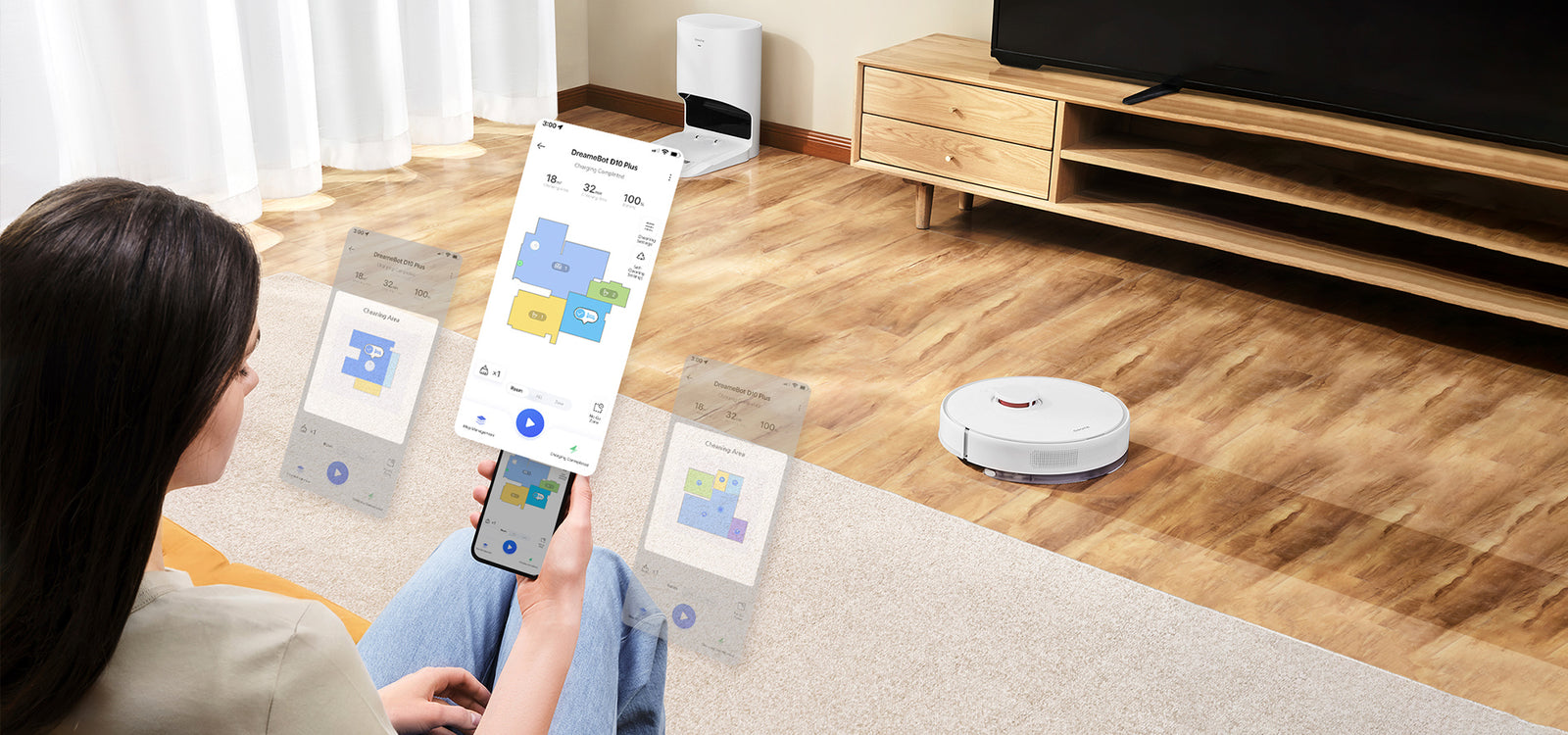 *8 minutter: Basert på testing av omgivelseskartlegging fra Dreame tar det 8 minutter å lage en planløsning på 100 m² (1076 ft²) i rask kartleggingsmodus. Faktisk ytelse kan variere basert på virkelige miljøforhold og faktisk bruk.Går lengre på én enkelt lading for maksimal dekning og komfort. Den store kapasiteten på 5200 mAh-V-batteriet gir rikelig med strøm for kontinuerlig, omfattende rengjøring opp til 270 m²*.