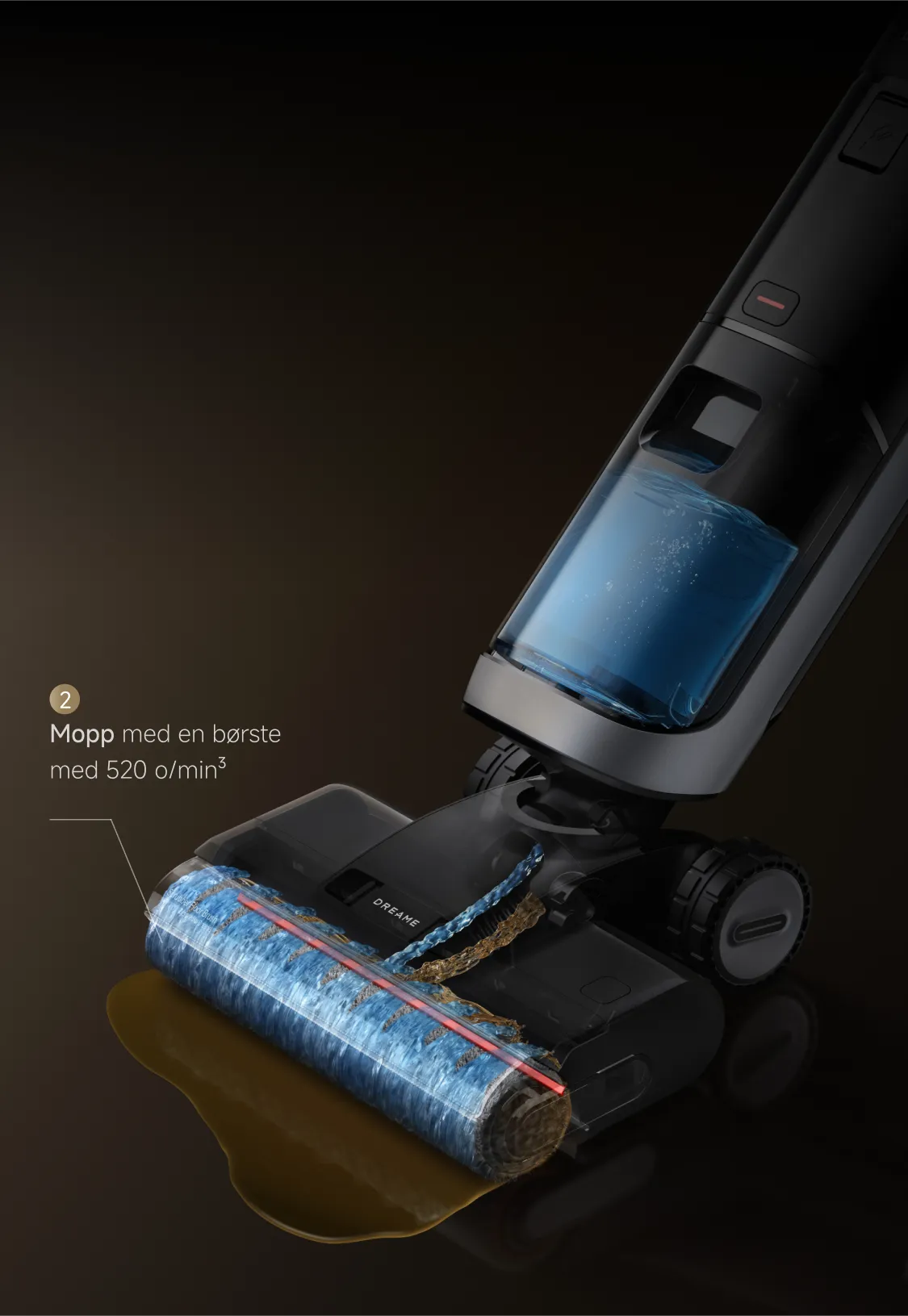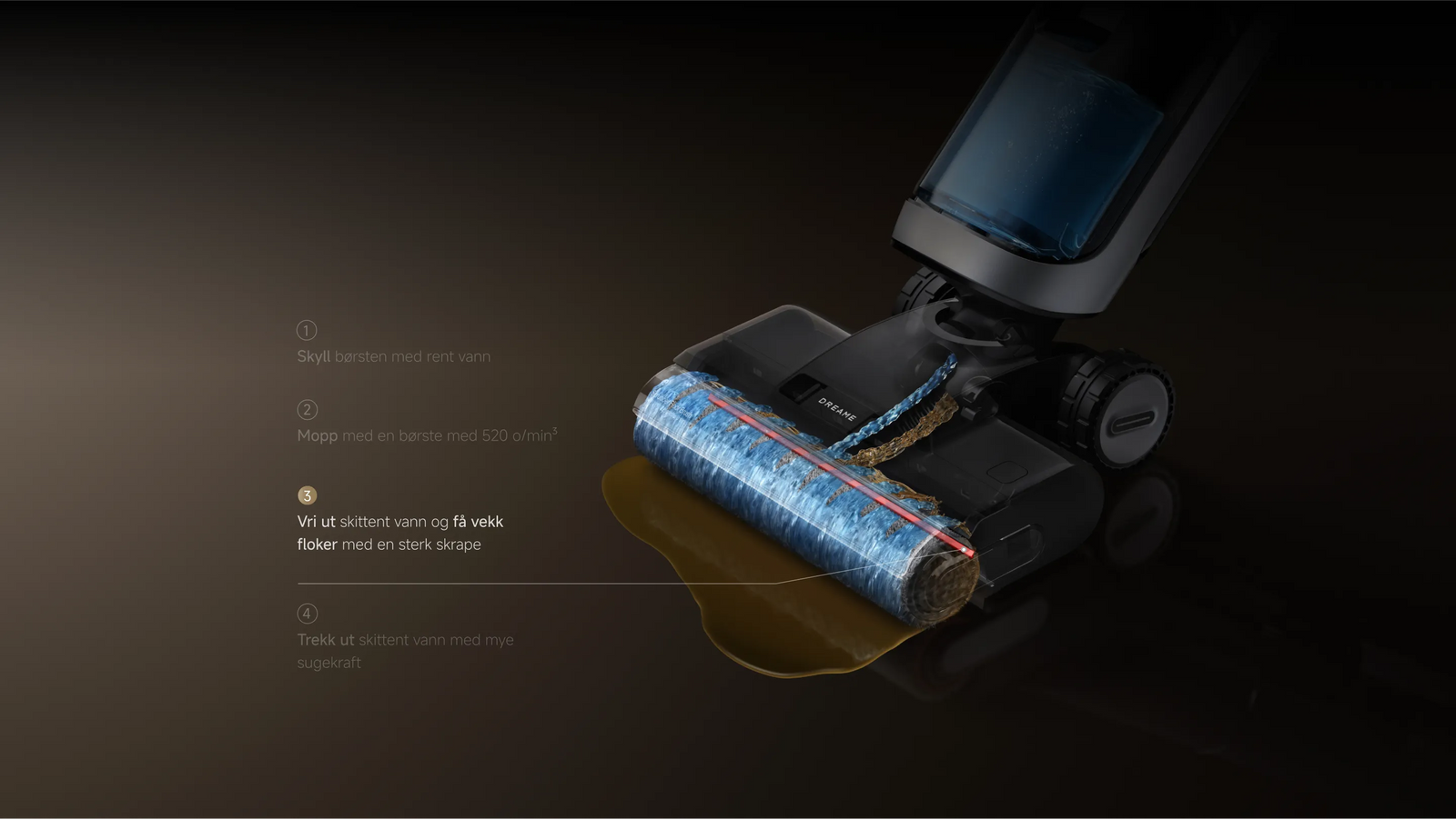 ³520 o/min: basert på testdata fra Dreame-laboratoriet. (Rapport nr.: ZMX-231213-009-14).