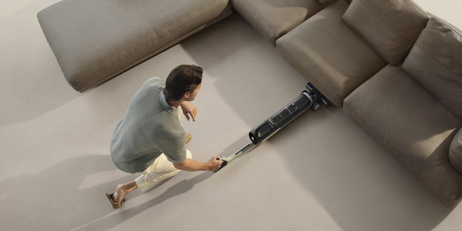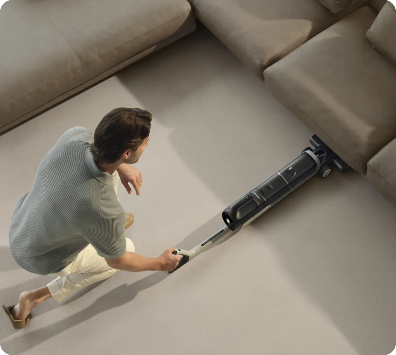 ¹180°, 14 cm, 9,8 cm: Hele støvsugeren kan nå under steder så lave som 14 cm, og børstehodet kan gå helt ned til 9,8 cm. Når støvsugeren ligger flatt, er motorhåndtaket 18 cm fra bakken, basert på våre interne laboratoriedata.