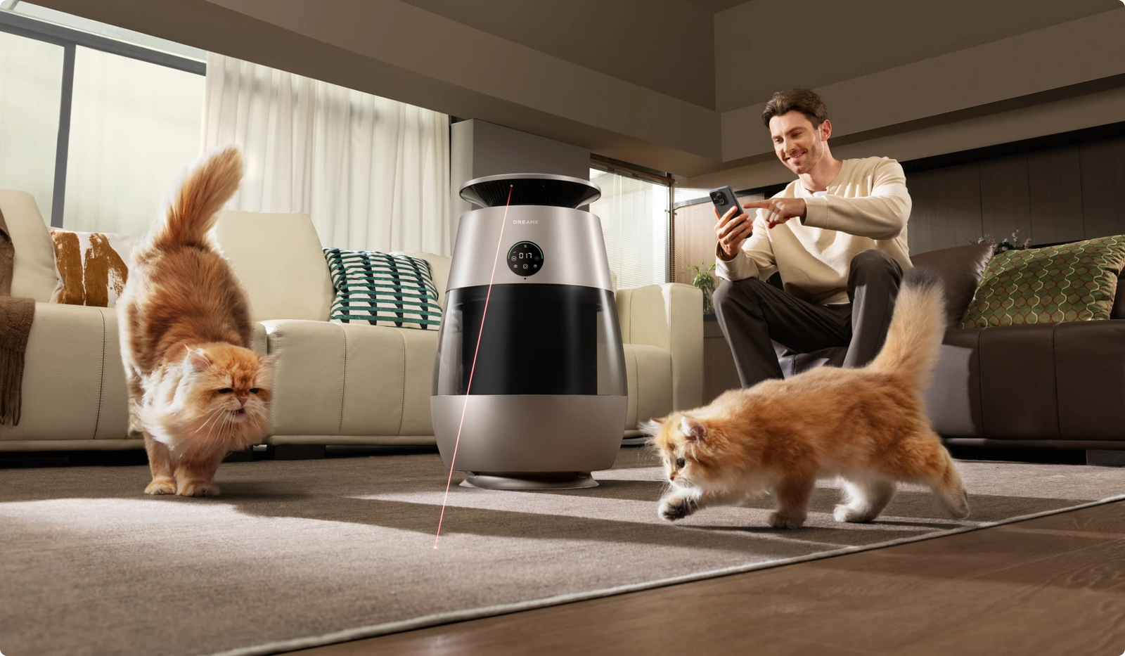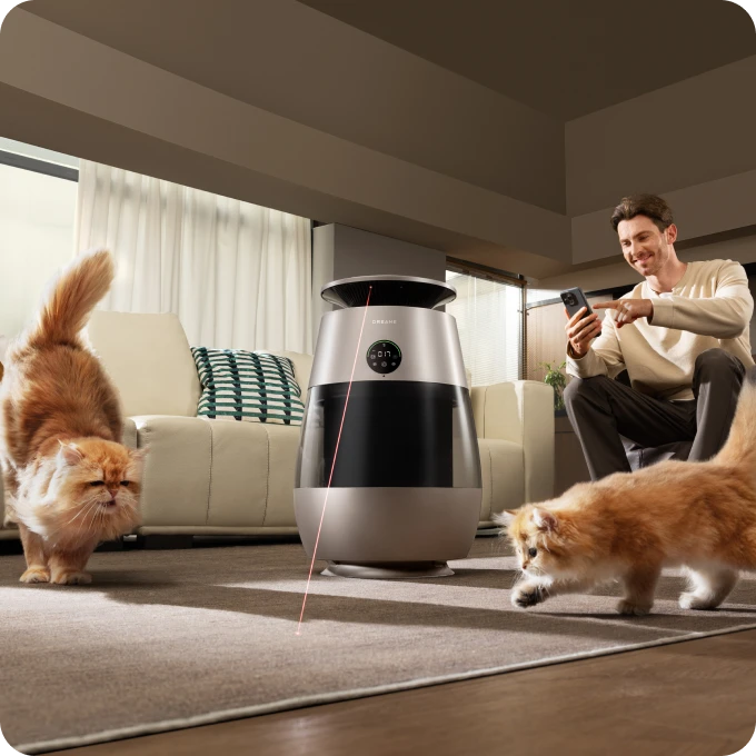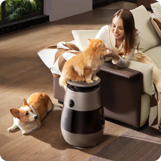 *99,9 %: Prototypenheten ble plassert i et 3 m³ testkammer og stilt inn på kjæledyrmodus. Under testingen ble det observert at etter at enheten ble slått på, ble dyrehår fanget opp på filteret, med en oppsamlingsgrad på 99,9 %. Basert på en test i vårt interne laboratorium. Faktisk ytelse kan variere avhengig av faktisk bruksmiljø og faktiske betingelser;