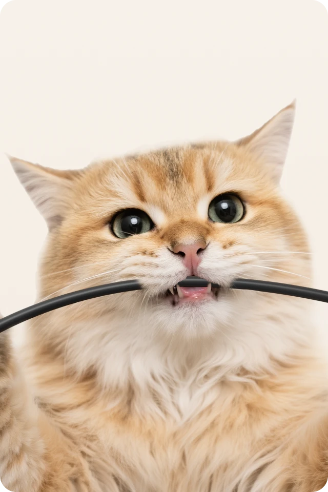 *Bittsikker strømledning: Med antibittstruktur uten bittersmakende tilsetningsstoffer, som gir overlegen beskyttelse mot kjæledyrbitt eller -trekking.