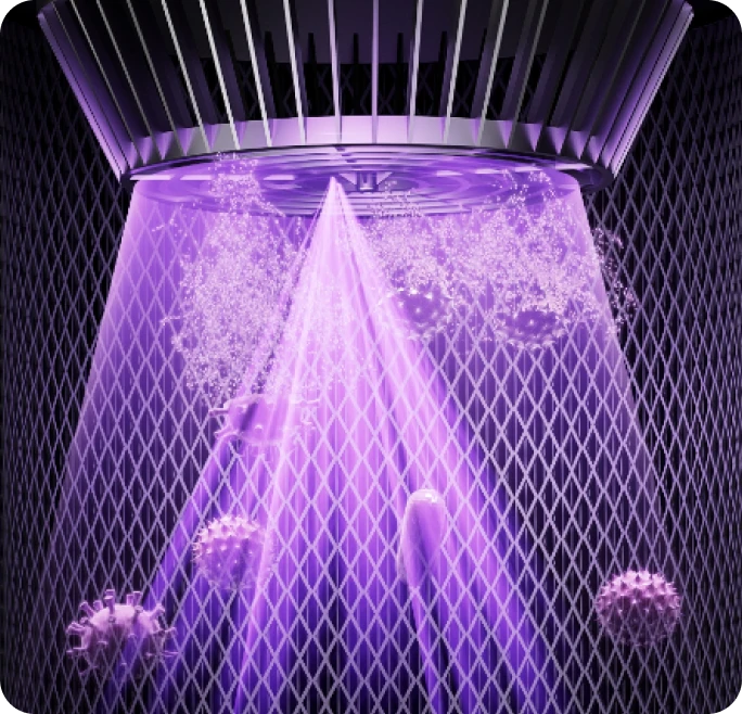 *UVC-lys: Benytter strålingsfaktoren til UV-lamper for antibakteriell behandling. Ved å bruke en passende bølgelengde forstyrres molekylærstrukturen til DNA (deoksyribonukleinsyre) eller RNA (ribonukleinsyre) i mikrobielle celler, og oppnår en bakteriedrepende og desinfiserende effekt.