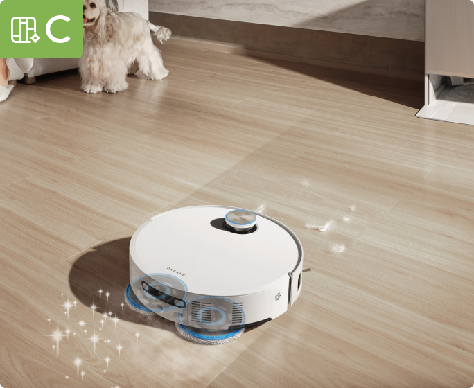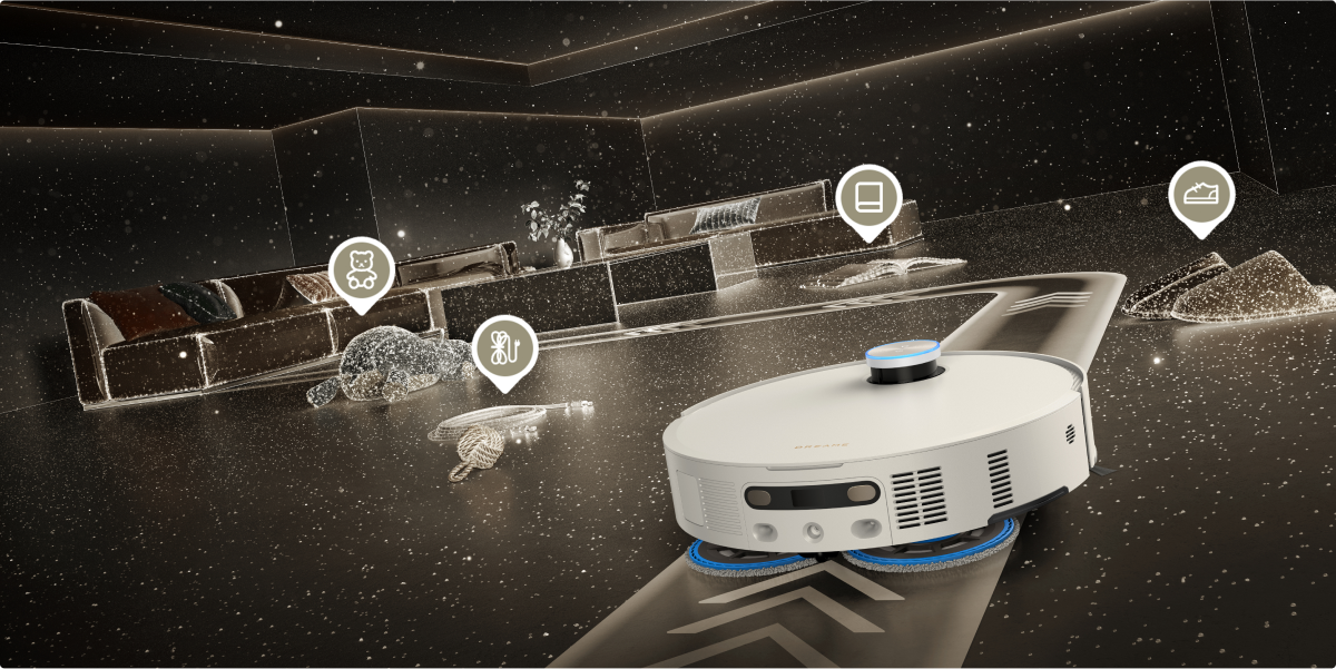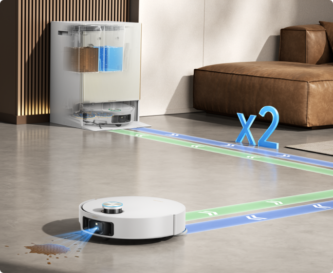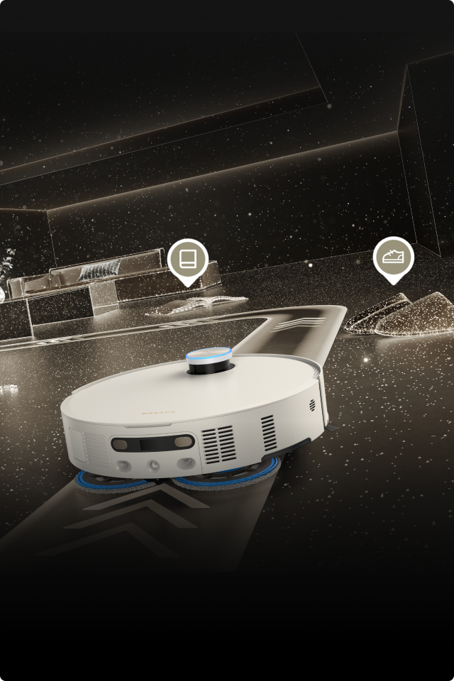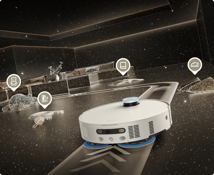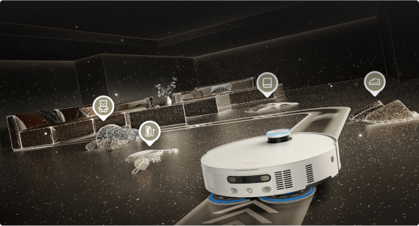 Med 3D-strukturert lys og AI-funksjon oppdager Matrix10 Ultra raskt 240+* typer objekter. Denne teknologien genererer et detaljert 3D-kart for å oppdage og unnvike mindre gjenstander som ledninger og sokker, samtidig som den trygt navigerer nærmere større hindringer som sko og ladebaser.