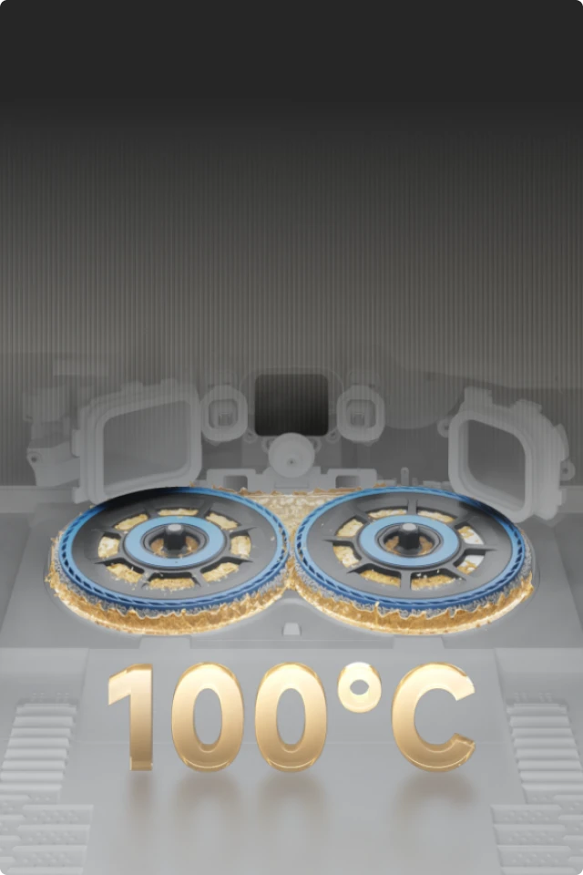 **Varmtvannsrengjøring, 40 °C: Etter moppevask med varmtvann som holder 100 ℃, ligger temperaturen til moppene innenfor et konstant område på 30–40 °C etter 1 min med rengjøring, med en topp på 40 °C. Basert på våre interne laboratoriedata. Faktisk ytelse kan variere.