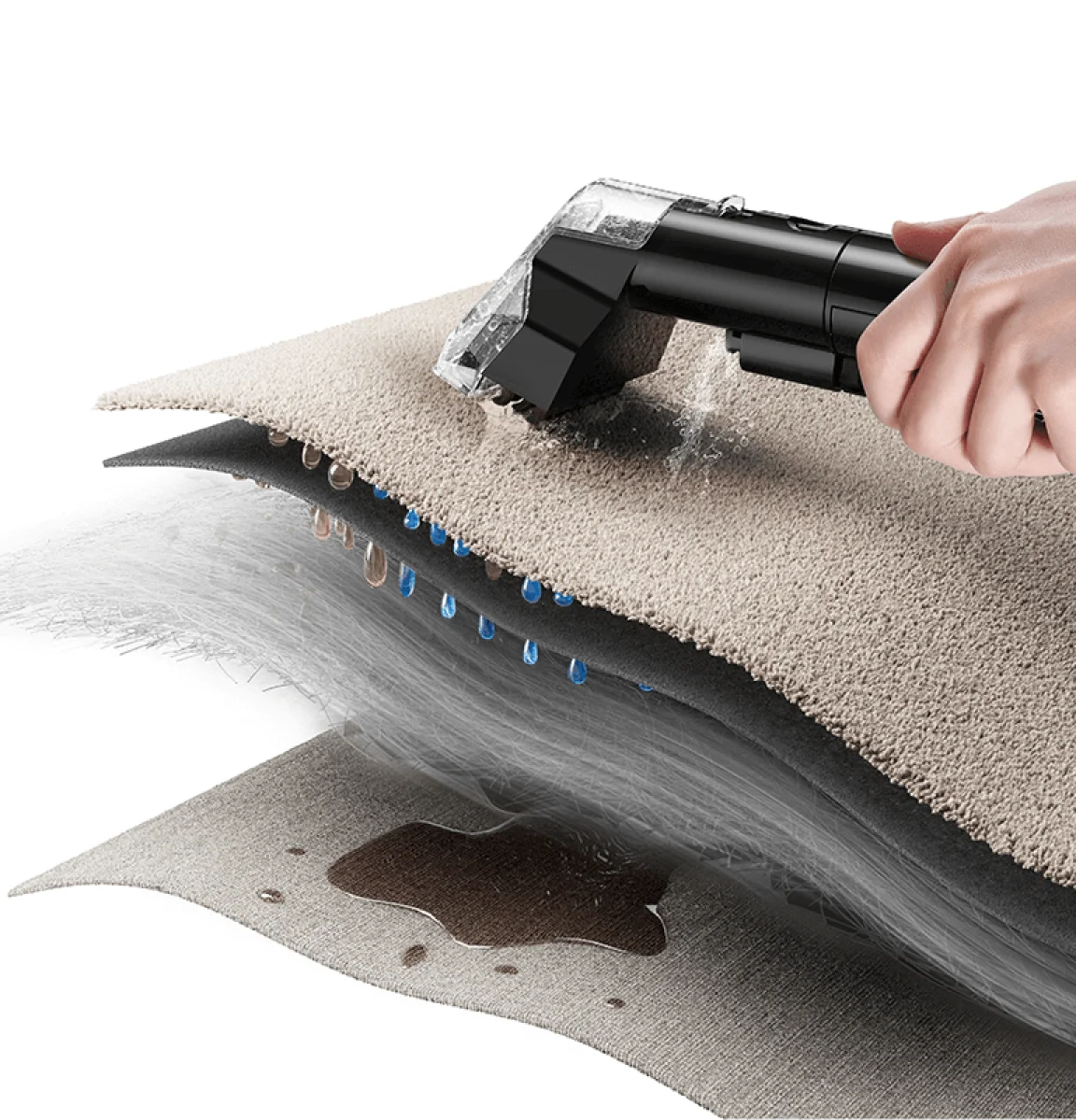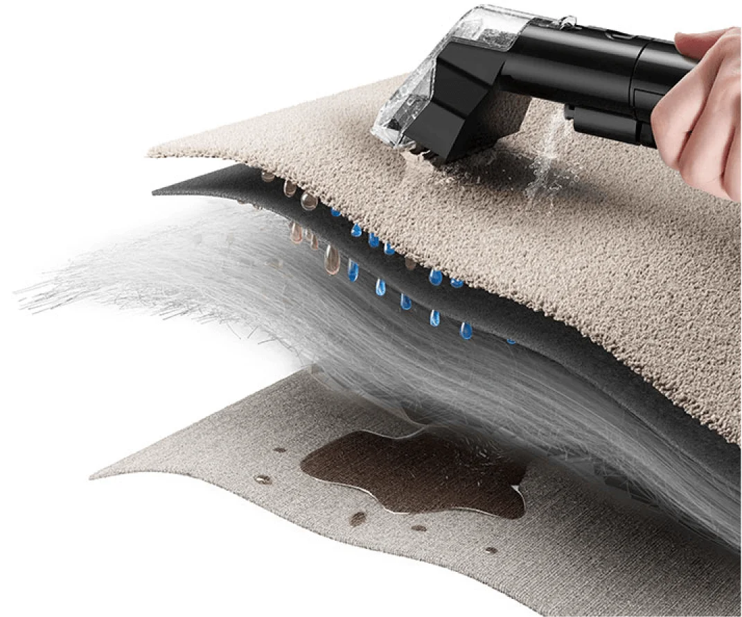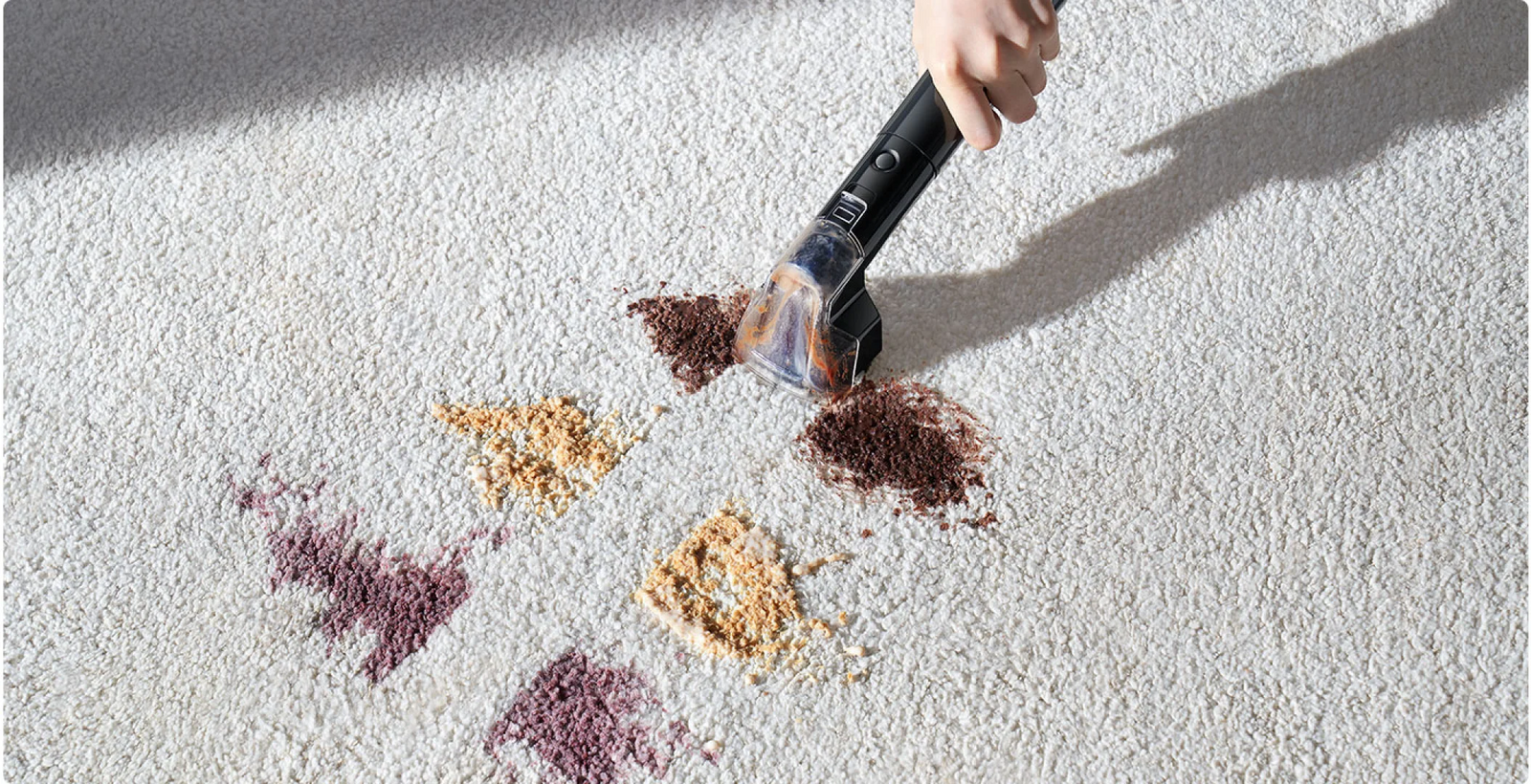 12 000 Pa sugekraft etterlater tepper nesten tørre på få minutter