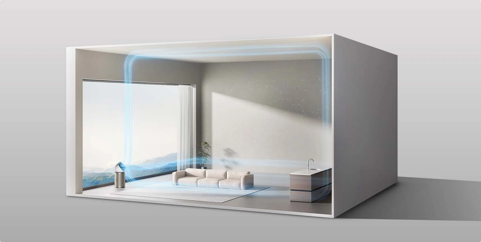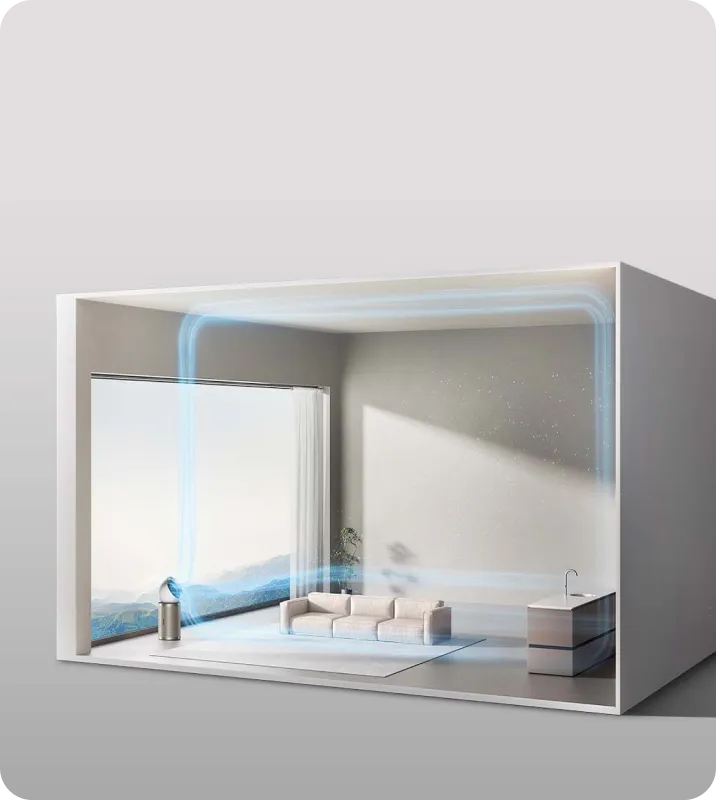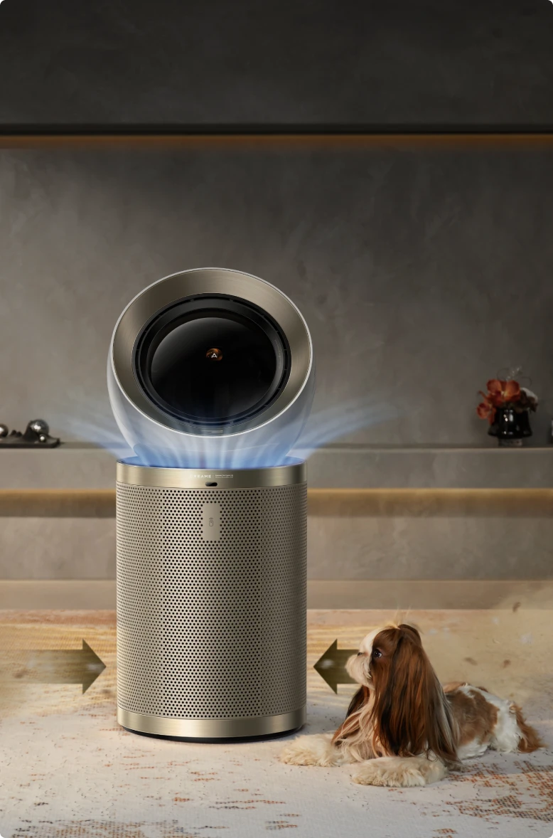 Dreame luftrenser har et luftuttak som går oppover og fremover, noe som tredobler effektiviteten til en luftrenser, en kjølevifte eller en sirkulerende vifte. Designet med to luftveier øker luftsirkulasjonen og skaper et komfortabelt miljø – ideelt for varmt vær eller dårlig ventilerte områder.