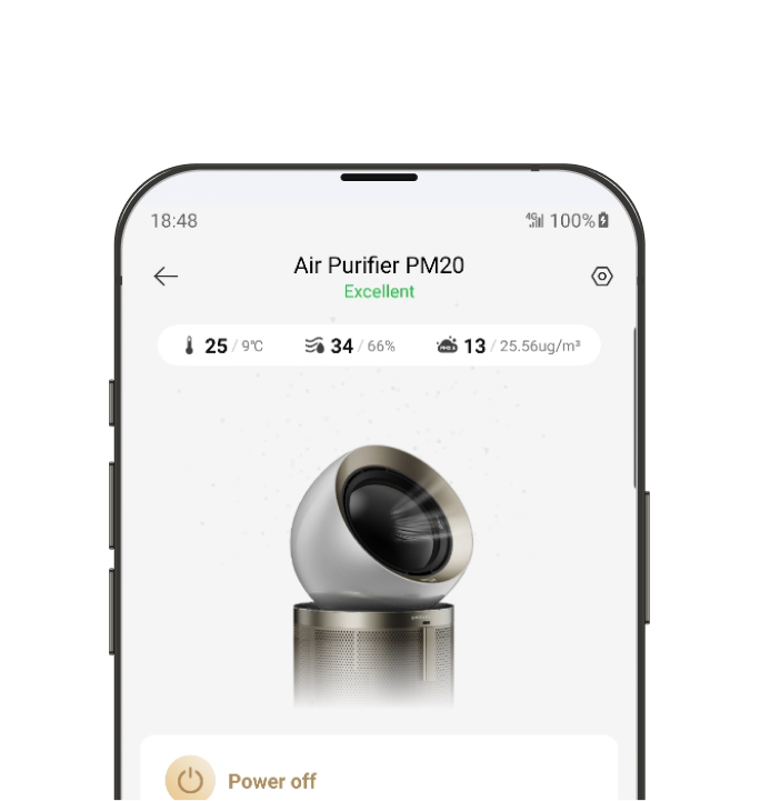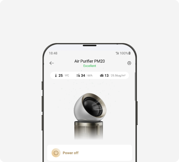 Kontroller Dreame luftrenser uten problemer med den intuitive Dreame-appen. Still inn tidtakere, overvåk luftforurensning og administrer luftrenseren med talekommandoer uten internettilkobling eller eksternt via appen mens du er borte – for en virkelig håndfri opplevelse.