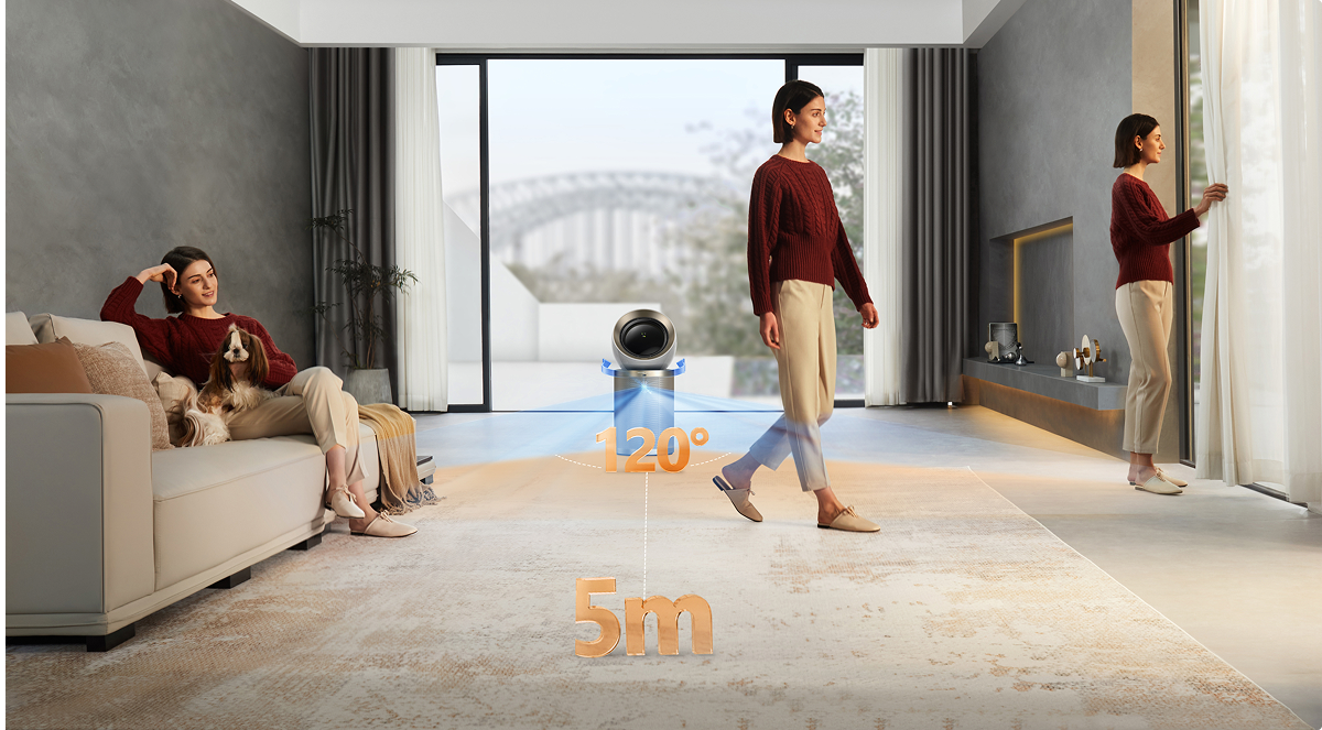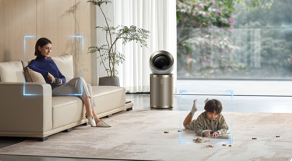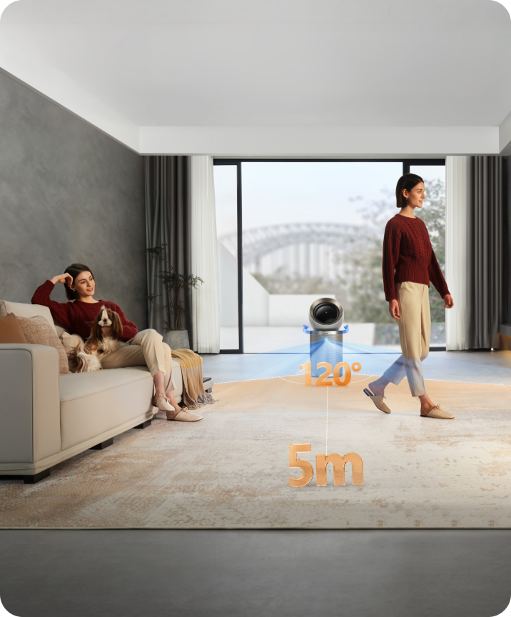 Opplev justerbar luftstrøm skreddersydd for alle i hjemmet ditt. Hvis det er én person til stede, følger luftstrømmen personens posisjon. Hvis det er flere enn én person, strømmer den intuitivt fra side til side*, noe som muliggjør balansert og forbedret luftdekning.