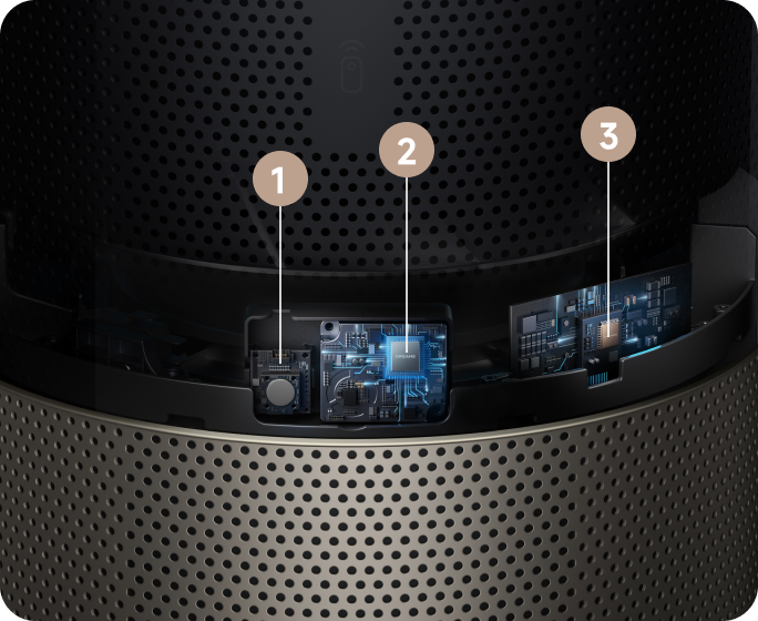 1Trippelsensoren oppdager HCOC-, temperatur- og fuktighetsnivå2Partikkelsensor3Spor TVOC-luftkvaliteten