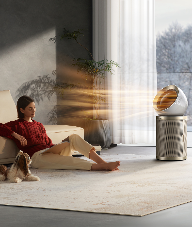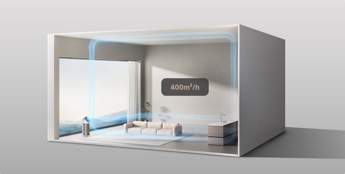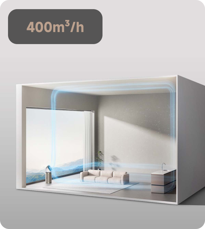 Dreame luftrenser har et luftuttak som går oppover og fremover, noe som tredobler effektiviteten til en luftrenser, en kjølevifte eller en sirkulerende vifte. Designet med to luftveier øker luftsirkulasjonen og skaper et komfortabelt miljø – ideelt for varmt vær eller dårlig ventilerte områder.