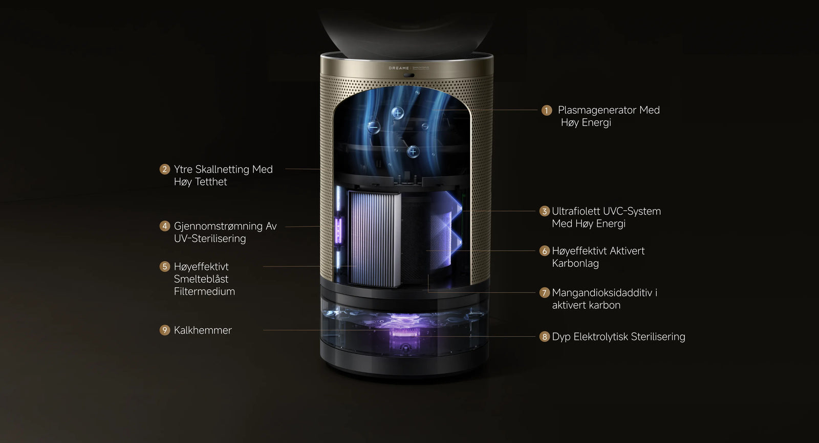 *Fjerning av 99,97 % av ultrafine partikler så små som 0,3 μm: Dataene er basert på tredjepartslaboratoriet. Rapportnr.: 240202642.