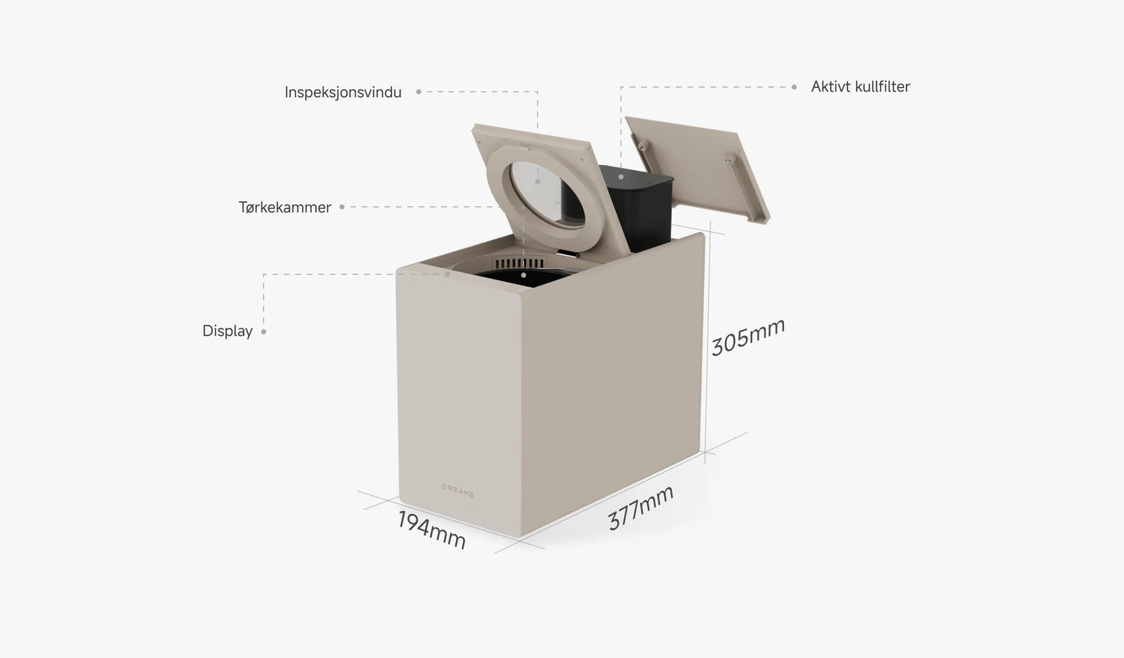 Dimensjoner (B × H × D)