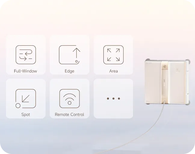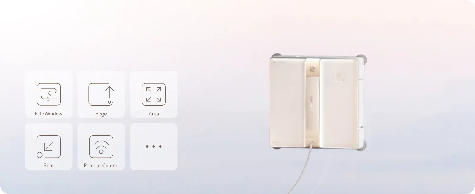 *Helningsvinkel: C1 aktiverer automatisk rengjøringsmodus når panelvinkelen er mellom 60° og 120°, eller når den er plassert over glasset. Andre vinkler krever fjernstyring.