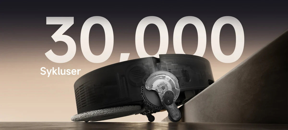 *10,5 mm: Basert på tester fra vårt interne laboratorium. Høydeforskjellen på robotstøvsugeren er 10,5 mm før og etter moppeheving.