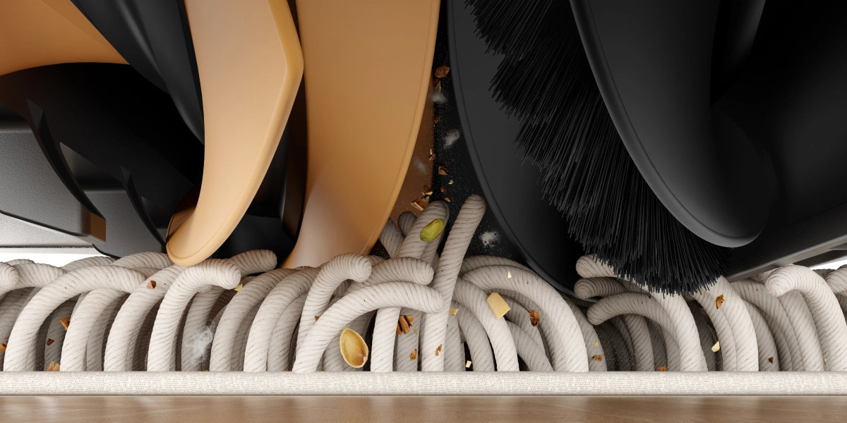 *5 mm: Basert på tester fra vårt interne laboratorium. Hevehøyden defineres som avstanden mellom toppen av hårene på hovedbørsten og bakken etter at sidebørsten er hevet.